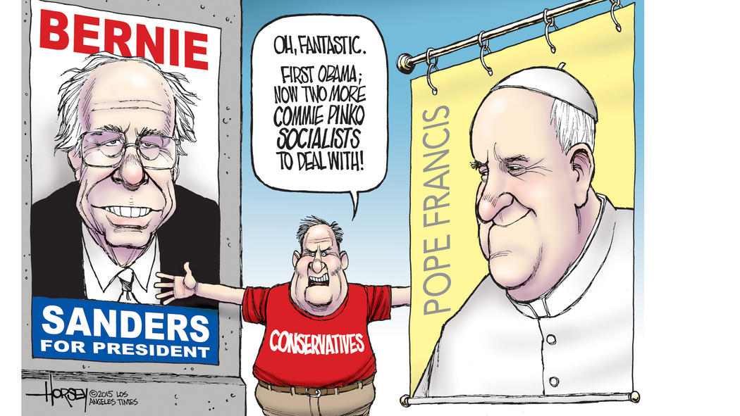 The two men are on the same page, at least on issues of economic justice. Each in his own way is challenging established orthodoxy, and each can go only so far. Pope Francis can call for greater compassion toward gays and lesbians, but he isn’t about to endorse gay marriage, not that he would want to. Bernie Sanders can call for single-payer health care and tuition-free public colleges and universities, but he isn’t about to call for worker control of the means of production, not that he would want to. Clearly, when they meet, they will find much common ground. Here is how I imagine their conversation could go.